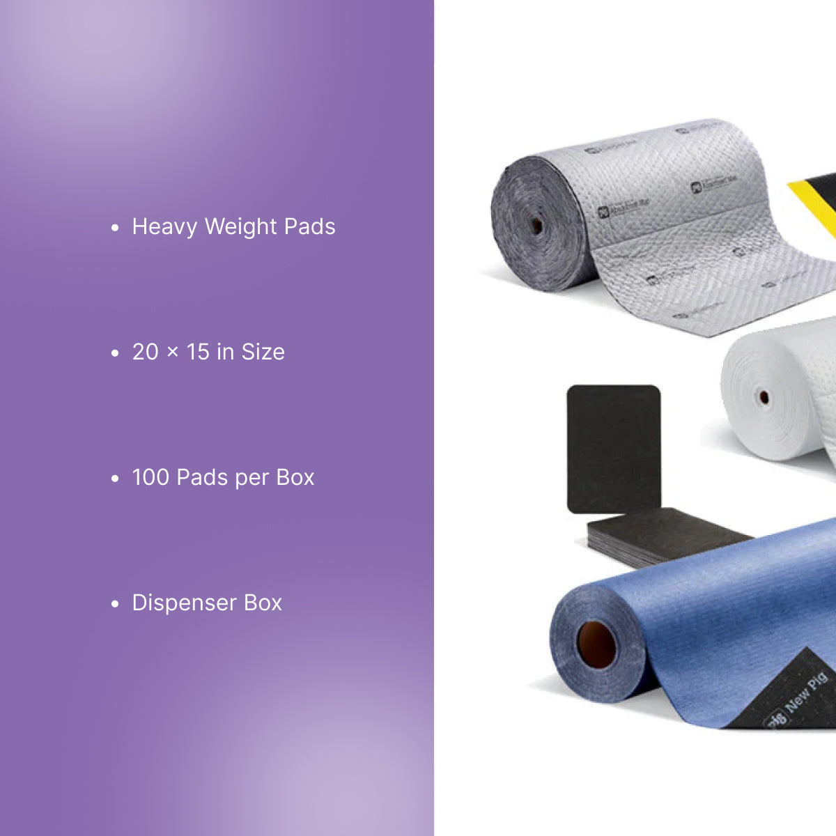 Material & construction: These heavy-weight oil-only absorbent mats are supplied as pre-cut pads in a dispenser box for easy access.