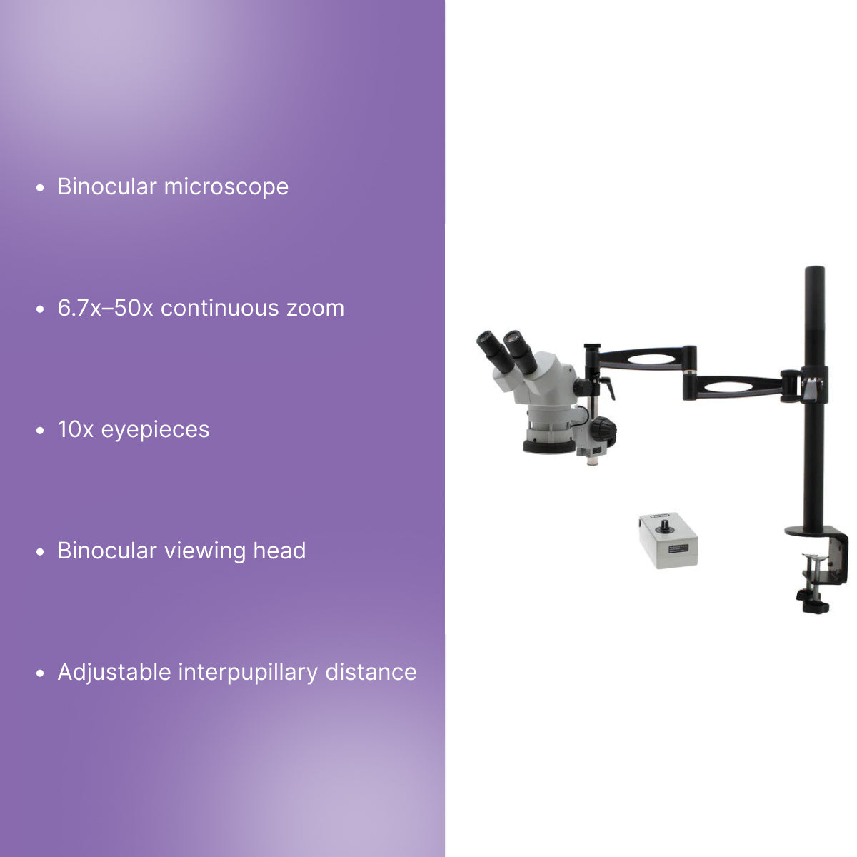Key performance benefit: This binocular microscope offers continuous zoom magnification from 6.7x to 50x, enabling detailed inspection and observation across a wide range of specimen sizes.