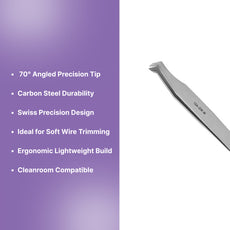 Cut up soft wires with precision using Lab Pro's micro-cutting tweezers. These are made with ultra-fine blades that offer optimal visual clarity when magnified. Our tweezer tips are covered with static dissipative epoxy to avoid losing electrons and are built with a thinner and lighter body for convenient handling.