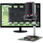 This innovative digital microscope connects directly to a HD monitor OR your PC. Magnification ranges up to 140x. This breakthrough instrument increases accuracy and productivity while easing eye strain and user fatigue valuable benefits in high-volume applications, such as parts inspection in assembly operations.