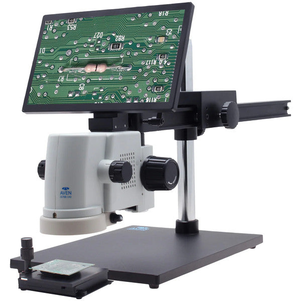 Aven's MicroVue Digital Microscope is an all-in-one inspection system.The MicroVue offers a magnification range of 17x - 110x on it's built- in 11.6" monitor and 8.6x to 221x with optional lenses