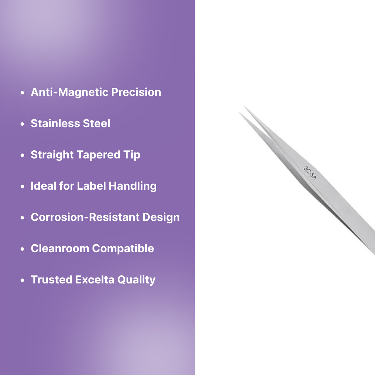 The Excelta Very Fine Straight Point Neverust Anti-Magnetic Stainless Steel Tweezer is engineered for professionals who require precision, balance, and control in delicate applications. Constructed from Neverust® stainless steel (AISI 316L), this tool offers exceptional corrosion resistance and complete anti-magnetic performance—making it ideal for cleanrooms, laboratories, and sensitive electronic work.