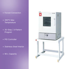 High-performance, energy-saving, programmable 300L constant temperature, forced convection oven with air velocity control and exhaust dampers. Program featured to reduce power consumption significantly. Superior heat tightness and insulation of chamber. Excellent dust tightness, dust can hardly enter the chamber. Air velocity changeable in 10 stages using digital setting of controller. Standard with 99 step program operation with repeat operation, auto start, auto stop and quick auto stop functions. Adjustable damper position at chamber front to optimize operation. Fluorescent display, interactive input method, calibration off-set function. Operating temp ambient +15~260°C.