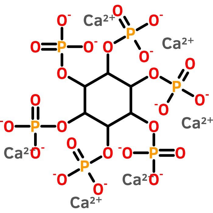 Inositol Hexaphosphate Calcium Salt is a saturated cyclic acid which can be found in grains and cereals. Also known as Phytic acid, it is present in many types of plant tissues as the main storage form of phosphorus. Ungraded products supplied by Spectrum are indicative of a grade suitable for general industrial use or research purposes and typically are not suitable for human consumption or therapeutic use.