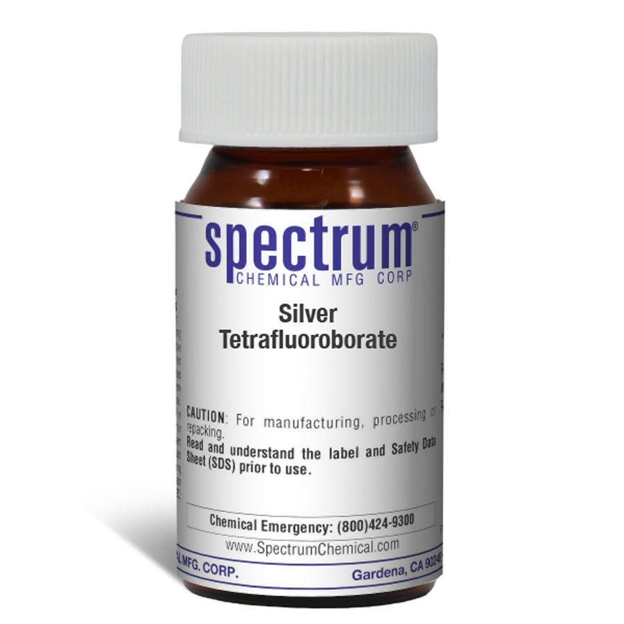 Silver Tetrafluoroborate is an inorganic compound used as a reagent in organometallic and inorganic chemical synthesis. Ungraded products supplied by Spectrum are indicative of a grade suitable for general industrial use or research purposes and typically are not suitable for human consumption or therapeutic use.