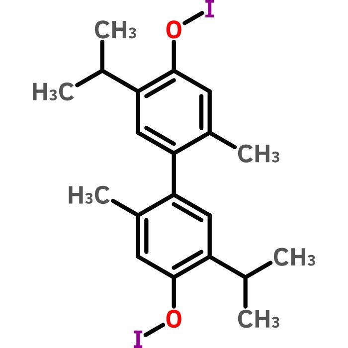 Thymol Iodide, Powder, Purified is used in the manufacture of some polymers, lacquers, adhesives, waxes and polishes. The Purified Grade describes chemicals of good quality where there are no official standards and is normally limited to inorganic chemicals.