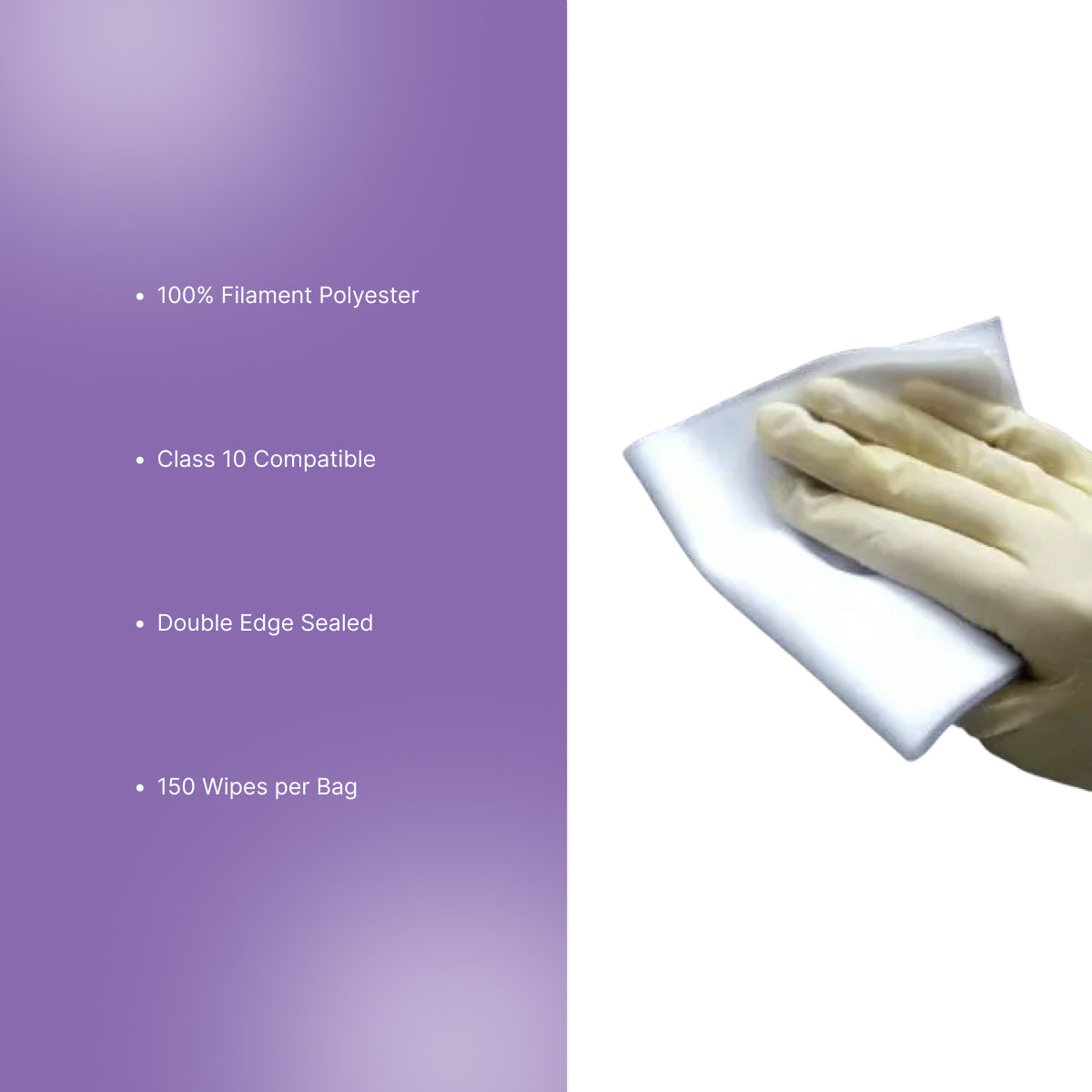 - Material & Construction: Made from 100% filament polyester; two edges ultrasonic cut and sealed; non-abrasive knit structure; laundered and double packaged in a Class 10 cleanroom; double sealed polybags.