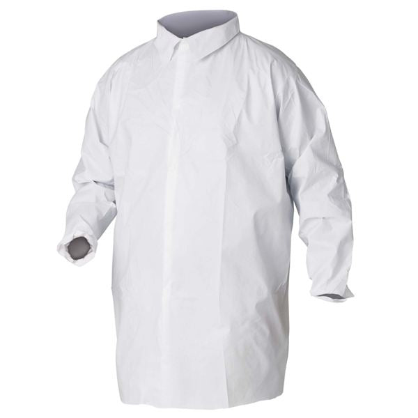 KleenGuard A40 Liquid & Particle Protection Lab Coats (30923), 5-Snap Closure, Knee Length, Elastic Wrists, White, 4XL (Qty 30)
