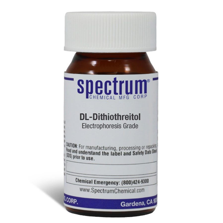 DL-Dithiothreitol, Electrophoresis Grade, also known as DTT or Reductacryl, is used as a reducing agent for thiolated DNA. The Electrophoresis Grade designation signifies that this material is specifically suitable for use in electrophoresis applications.