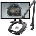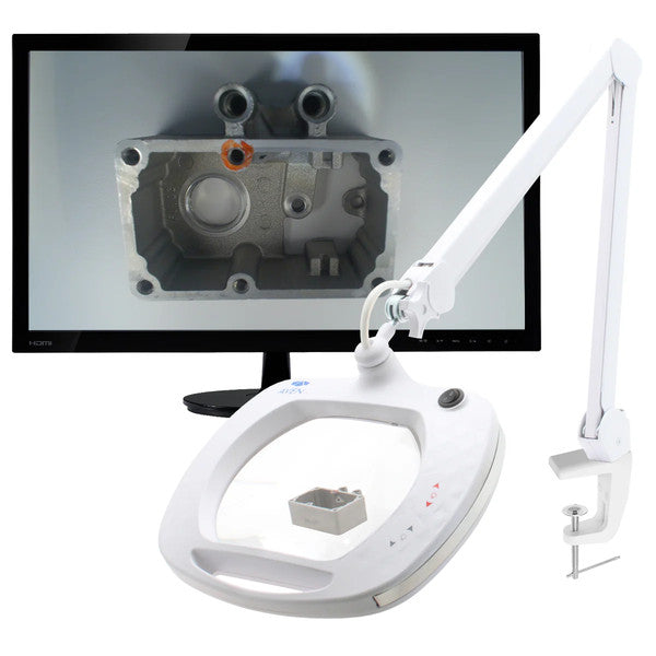 The Inspector is a magnifying lamp and camera inspection system in one self-contained unit allowing you to view the image directly on an HDMI monitor, capture and store images on the included microSD Card.  This lamp also features a USB output for computer connectivity.