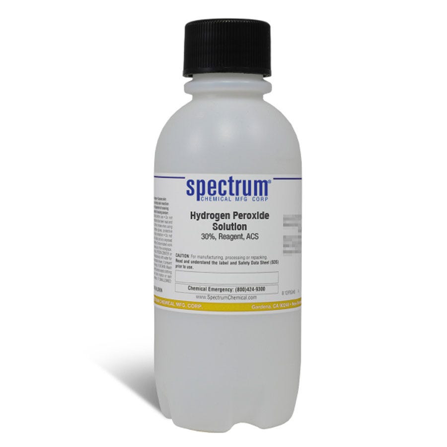 Hydrogen Peroxide Solution, 30 Percent, Reagent, ACS, is the simplest peroxide, a strong oxidizer that appears as a clear and slightly viscous liquid. Its oxidizing properties are so strong that it is considered a highly reactive oxygen species. Due to it being a weak acid it can form hydroperoxide or peroxide salts. One of its biggest uses is in the treatment of drinking water, removing odors, organic materials and the amount of Hydrogen sulfides and Iron. As an ACS grade Reagent, Spectrum Chemical manufactured Hydrogen Peroxide is used as the quality standard against which other substances are graded and has met the toughest regulatory standards for quality and pureness.