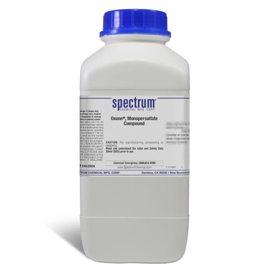 Oxone(R), Monopersulfate Compound, also known as potassium peroxymonosulfate or MPS, is the potassium salt of peroxymonosulfuric acid and used as an oxidizing agent. Ungraded products supplied by Spectrum are indicative of a grade suitable for general industrial use or research purposes and typically are not suitable for human consumption or therapeutic use.