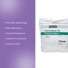 Texwipe ThermaSeal 60 9" x 9" sealed-edge polyester wipers, 1500 wipers/Cs - TX2069