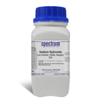 Sodium Hydroxide, Low Chloride, Pellets, Reagent, ACS is commonly known as Caustic soda. This inorganic compound is water soluble, as well as in ethanol and methanol. The dissolution of solid Sodium Hydroxide in water creates a highly exothermic reaction. One of its many characteristics is that it's a deliquescent alkali and absorbs carbon dioxide and moisture from the air. Used in many industries, most notably in the manufacture of pulp, paper, textiles, drinking water, detergents and as household drain cleaner. As an ACS grade Reagent, Spectrum Chemical manufactured Sodium Hydroxide is used as the quality standard against which other substances are graded and has met the toughest regulatory standards for quality and purity.