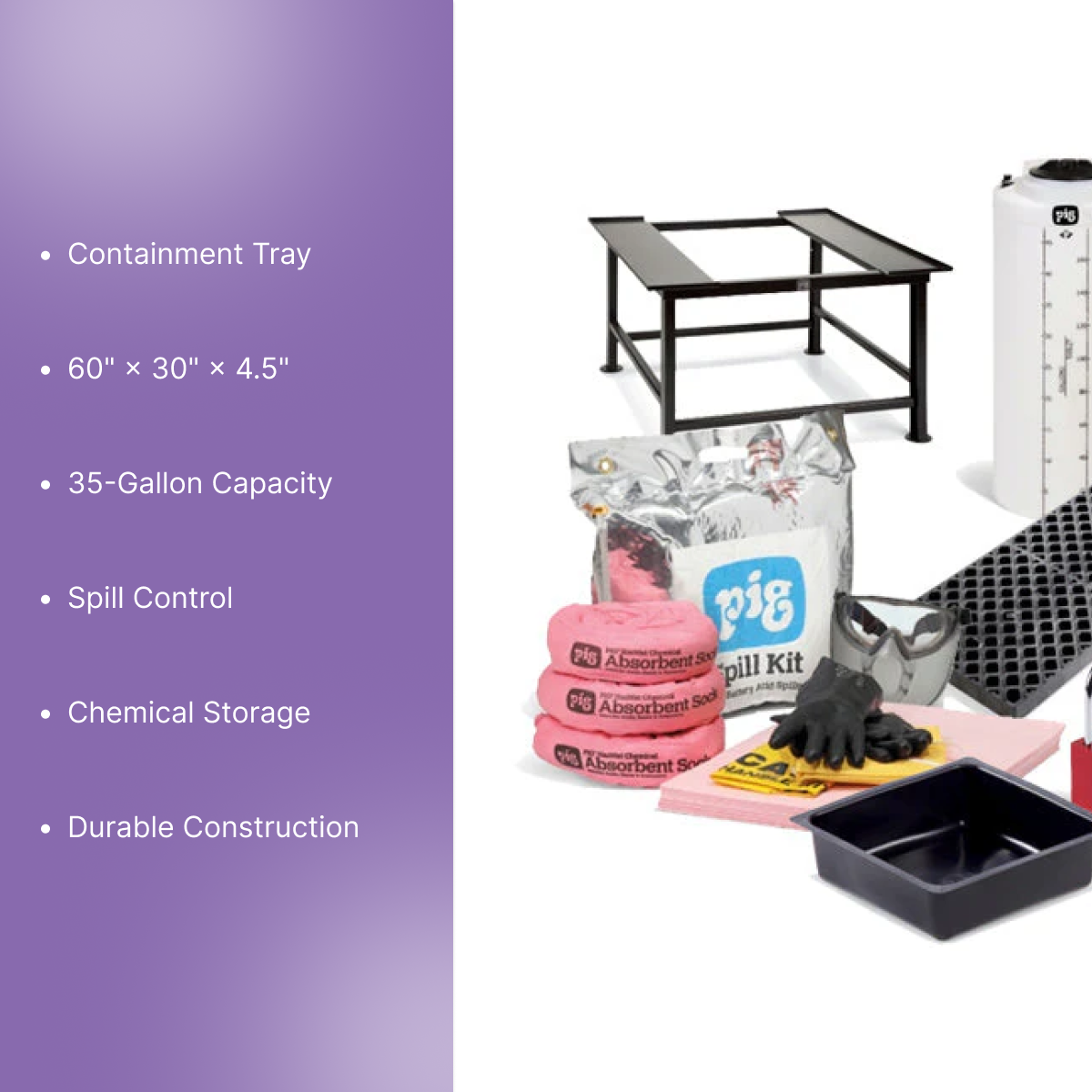 - Dimensions: 60" × 30" × 4.5" containment tray