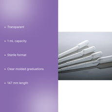 Use Lab Pro's nonbreakable Pasteur pipettes in drawing and transferring small amounts of liquids during lab work. These are risk-free, having been made from low-density polyethylene, can be refrigerated, and non-sterile. Sort through our assortment of Pasteur pipettes with varying specifications.