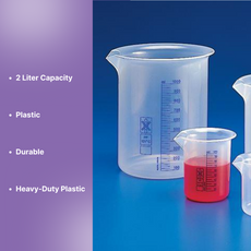 Lab Pro offers a good selection of plastic beakers with varying capacities ranging from 10 to 10,000mL, depending on your particular needs. Choose from ones made of polymethylpentene (PMP) for chemical resistance, polypropylene (PP) for flexibility, or polytetrafluoroethylene (PTFE) for high ebullition. All of our plastic beakers here have pouring spouts, clearly readable printed graduations for ease of use, and are autoclavable.