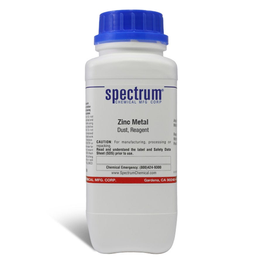 Zinc Metal, 325 Mesh, Dust, Reagent is an element with the atomic number of 30. It is a metallic chemical element and is chemically similar to magnesium. It has been used as one of several metals needed to make alloys such as bronze and, more recently, to protect certain metals from oxidization in the galvanizing process. It is also used as a food supplement as well as in tooth paste and mouth wash preventing bad breath. Its reagent grade means this is the highest quality commercially available for this chemical and that the American Chemical Society has not officially set any specifications for this material.