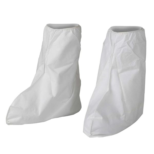 • KleenGuard A40 Liquid and Particle Protection Boot Covers have an elastic opening, elastic ankle, serged seams and a highly durable PVC sole