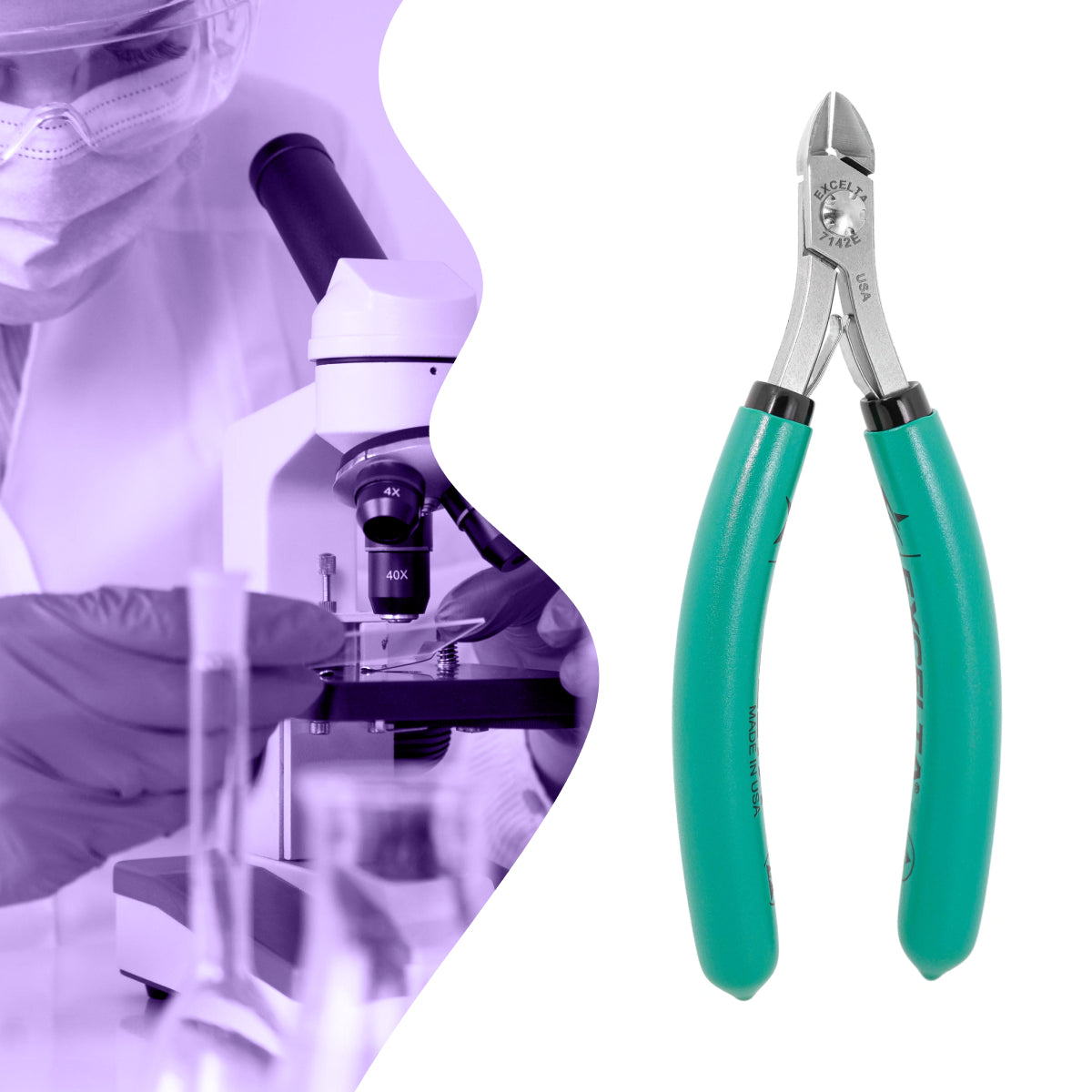 The Excelta 7142E is a five-star precision Lazer Line® medium oval head cutter designed for optimum flush cutting of fine soft wire. With a cutting capacity of .001" to .042", this tool leaves no pinch on the wire, ensuring a clean finish for electronics, laboratory, and precision assembly applications.