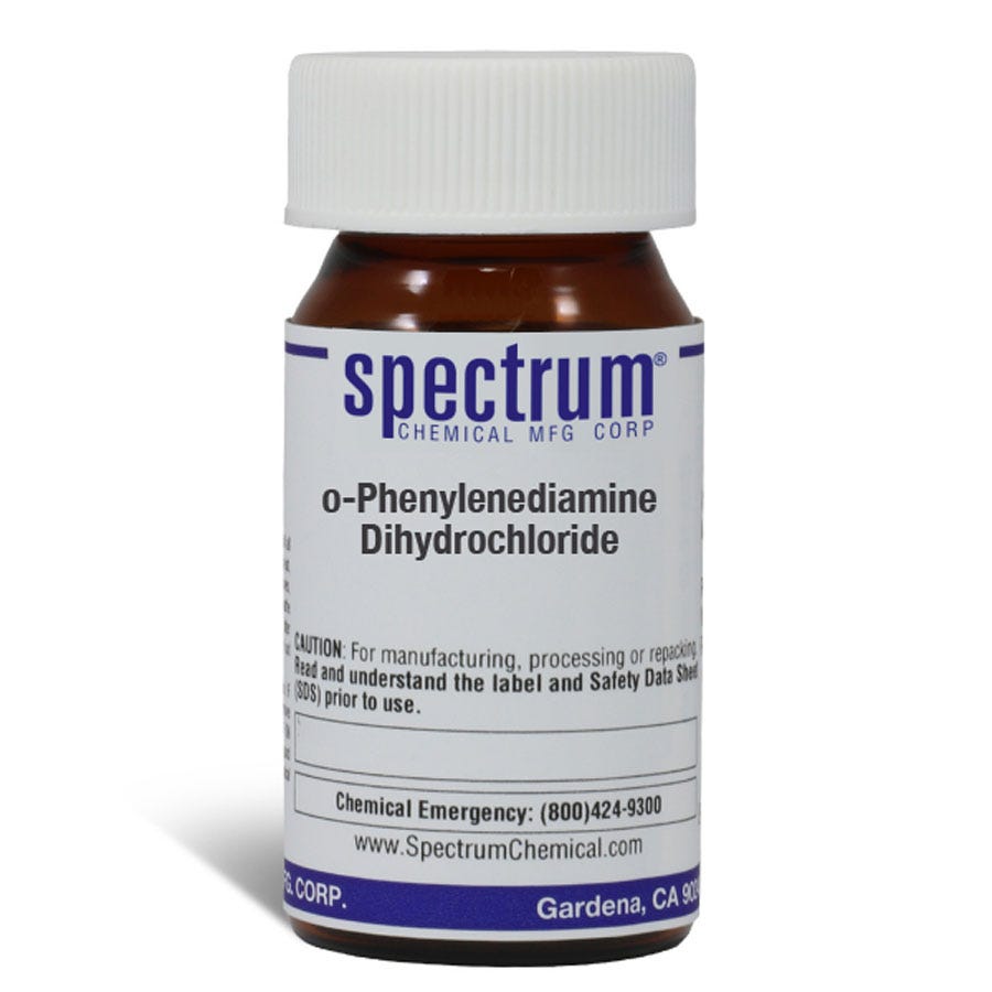 o-Phenylenediamine Dihydrochloride, also known as o-Phenylene diamine or 1,2-Diaminobenzene, is an organic compound and is a useful condensation agent in organic synthesis and a ligand precursor in coordination chemistry. Ungraded products supplied by Spectrum are indicative of a grade suitable for general industrial use or research purposes and typically are not suitable for human consumption or therapeutic use.