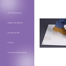 Adhesive Mats, Cleanroom, Sticky, Blue/Gray/White, 18" x 36", 4 Mats per Case - CRP0430-1