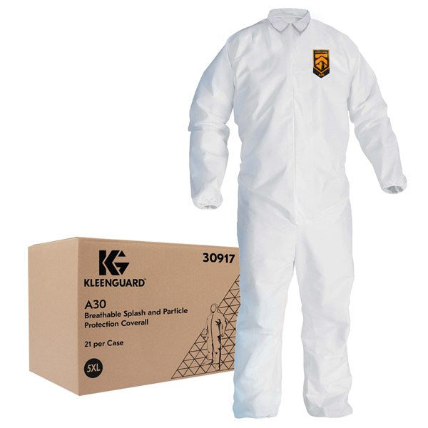 KleenGuard A30 Breathable Splash & Particle Protection Coveralls (30917), White, 5XL (Qty 21)