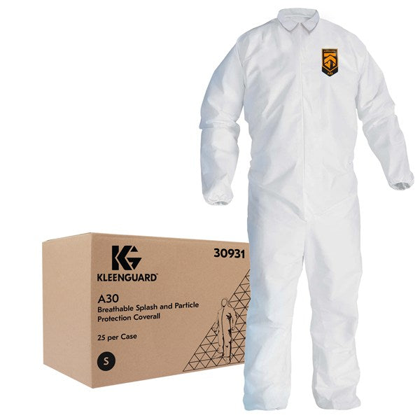 KleenGuard A30 Breathable Splash & Particle Protection Coveralls (30931), White, Small (Qty 25)