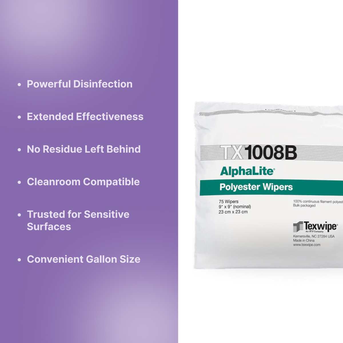 AlphaLite wipers are designed for ISO Class 4 - 8 cleanrooms and meet USP <797> and USP <800> standards. They offer excellent chemical resistance, making them compatible with a wide range of cleaning solutions such as isopropyl alcohol (IPA), ethanol, acetone, and degreasers. Whether you need to wipe down surfaces, remove residues, or clean items entering the cleanroom, these wipers provide consistent, contamination-free results.