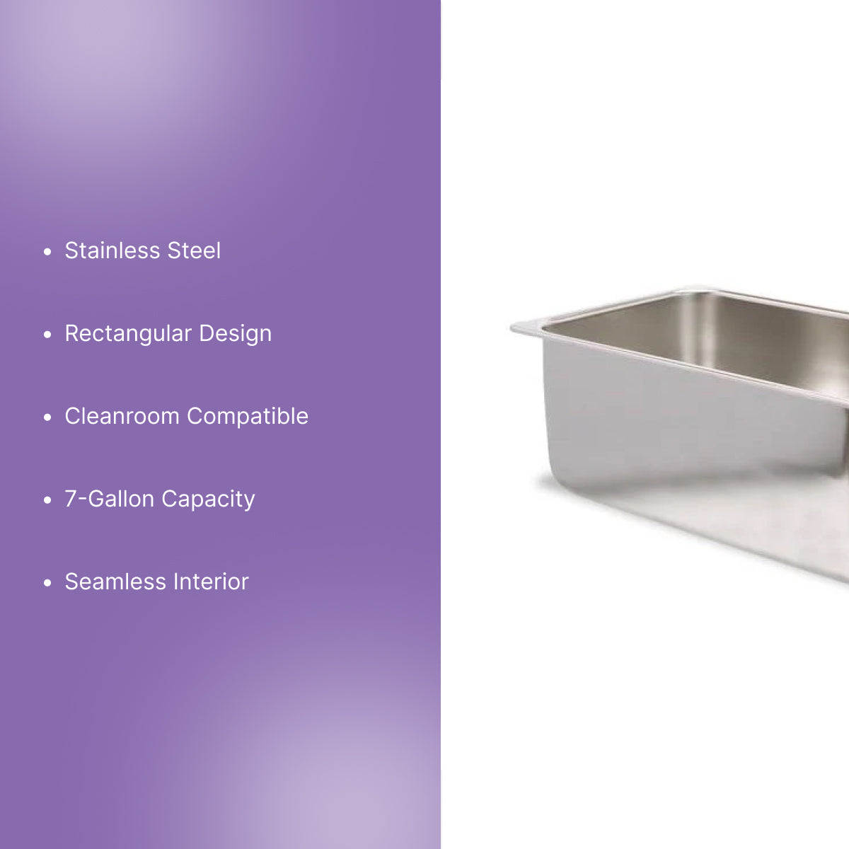 The Texwipe AlphaMop Stainless Steel Rectangular Bucket is built for use in controlled and sterile environments that require durable, easy-to-clean equipment. With a 7-gallon capacity, this rectangular bucket is constructed from high-quality stainless steel to provide maximum resistance to corrosion, chemicals, and repeated cleaning. The seamless interior surface helps prevent particle buildup and is easy to sanitize between uses.