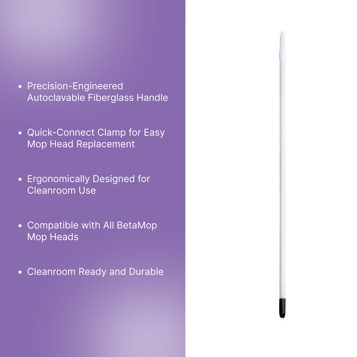 Yes, the Texwipe BetaMop® handle is autoclavable. This feature ensures the handle meets the sterilization standards required in cleanroom environments. Autoclavability is critical for maintaining cleanliness and reducing contamination risks in controlled settings.
