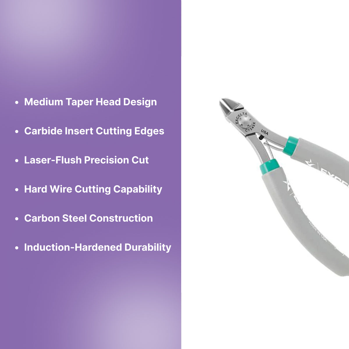 The Excelta Medium Taper Head Cutter with Carbide Insert delivers exceptional precision, strength, and longevity for demanding applications involving hard wire and micro-component cutting. Engineered with tungsten carbide inserts on a carbon steel frame, this tool combines cutting-edge durability with clean, laser-flush precision.